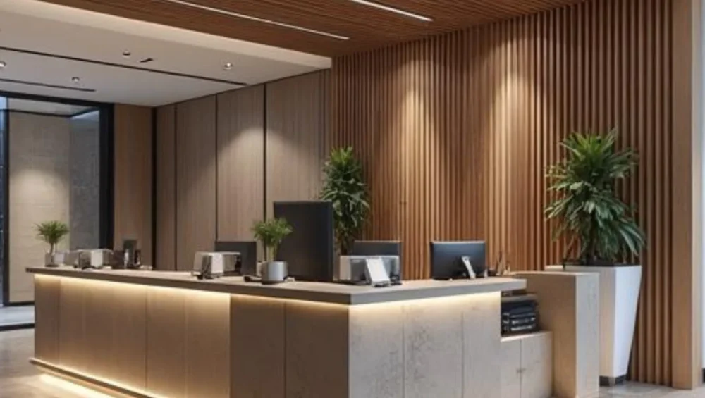 Area resepsionis berfungsi sebagai wajah kantor. Ketika meja resepsionis memiliki desain yang tidak selaras dengan identitas perusahaan, tamu dapat langsung menilai kantor kurang profesional.